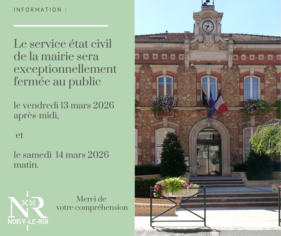 Fermeture Exceptionnelle Service Etat Civil de la Mairie