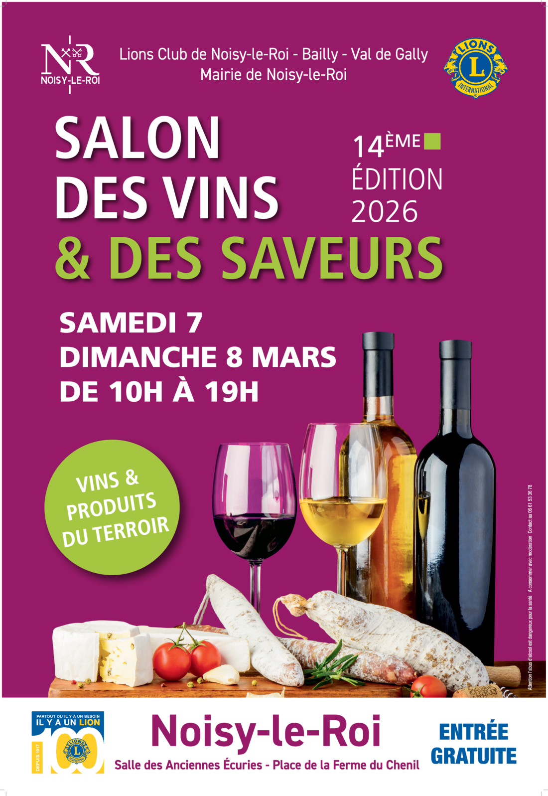 Le Salon des Vins & des Saveurs fait son grand retour le samedi 7 et le dimanche 8 mars 2026 pour la 14ᵉ édition. Nous vous attendons de 10h00 à 19h00, salle des Anciennes Écuries.