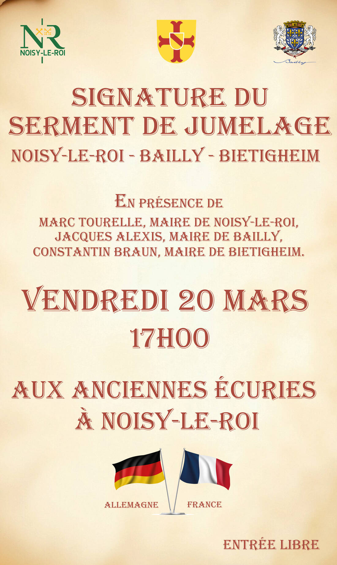 Les communes de Noisy-le-Roi, Bailly et Bietigheim officialisent leur jumelage lors d’une cérémonie exceptionnelle placée sous le signe de l’amitié franco-allemande 🤝