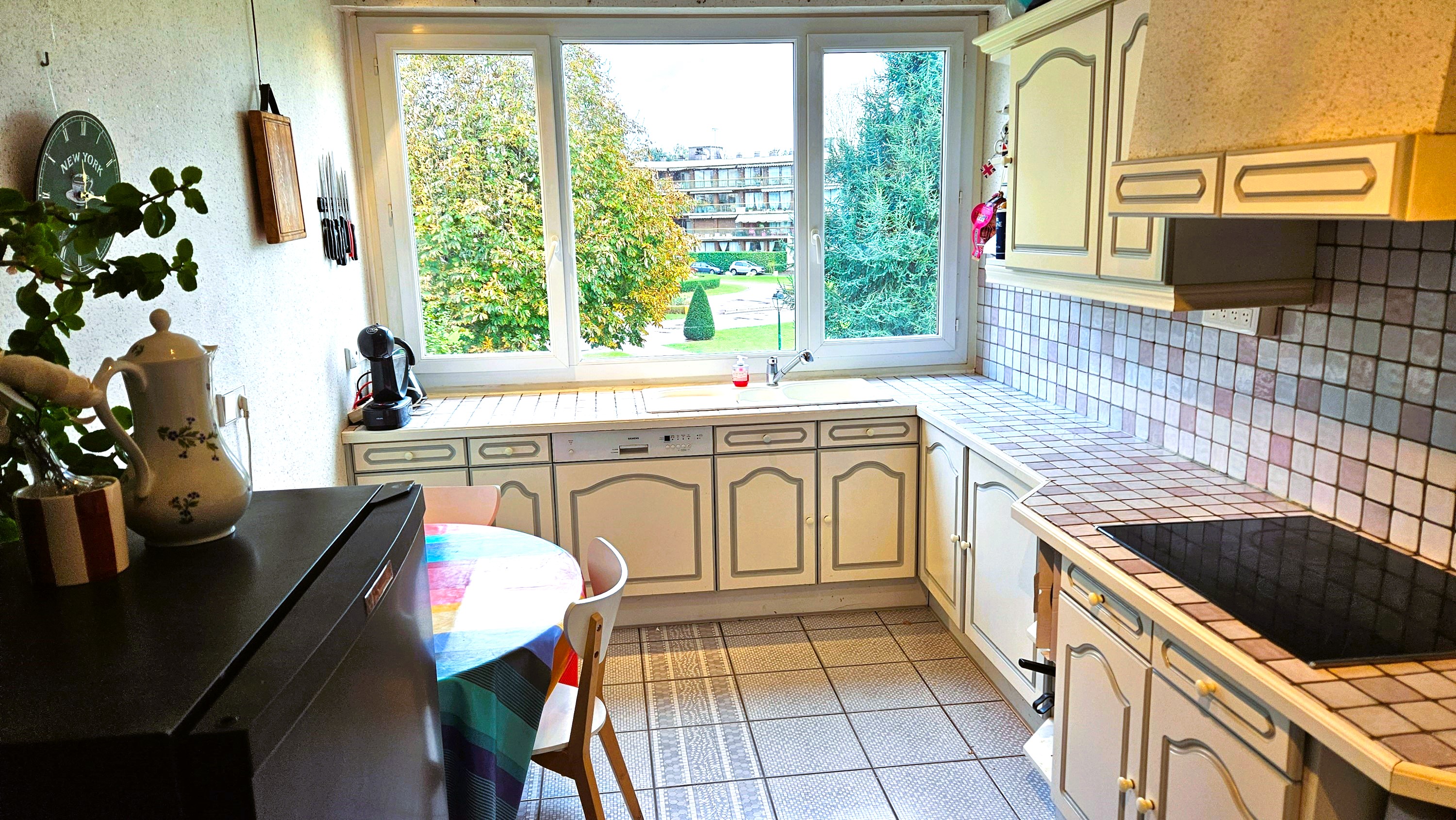 Appartement de 112 m2 en bon état au premier étage (106 Carrez), dans une résidence bien entretenue avec de grands espaces verts et jeux pour enfants. Environnement très calme.